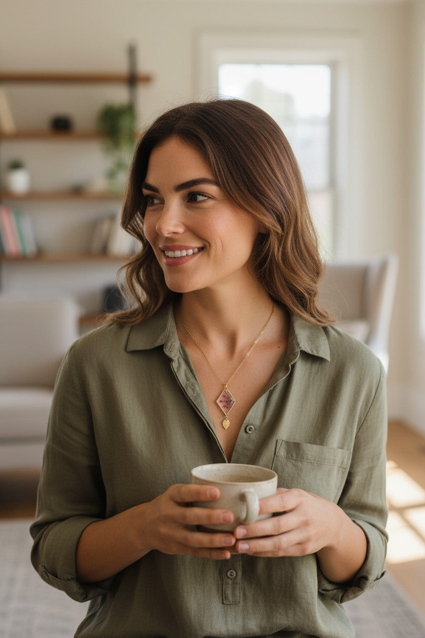 Ogni pezzo è unico e realizzato a mano con cura, racchiudendo la bellezza della natura in gioielli che portano con sé un'eleganza discreta e romantica.